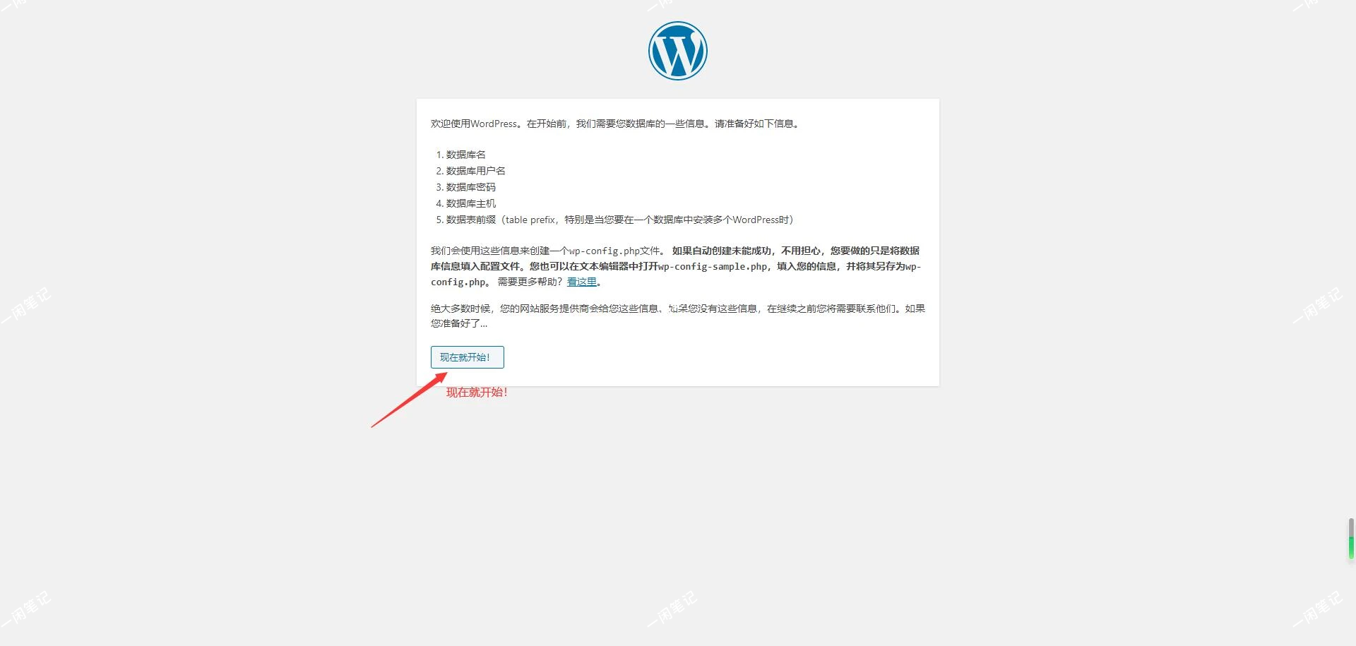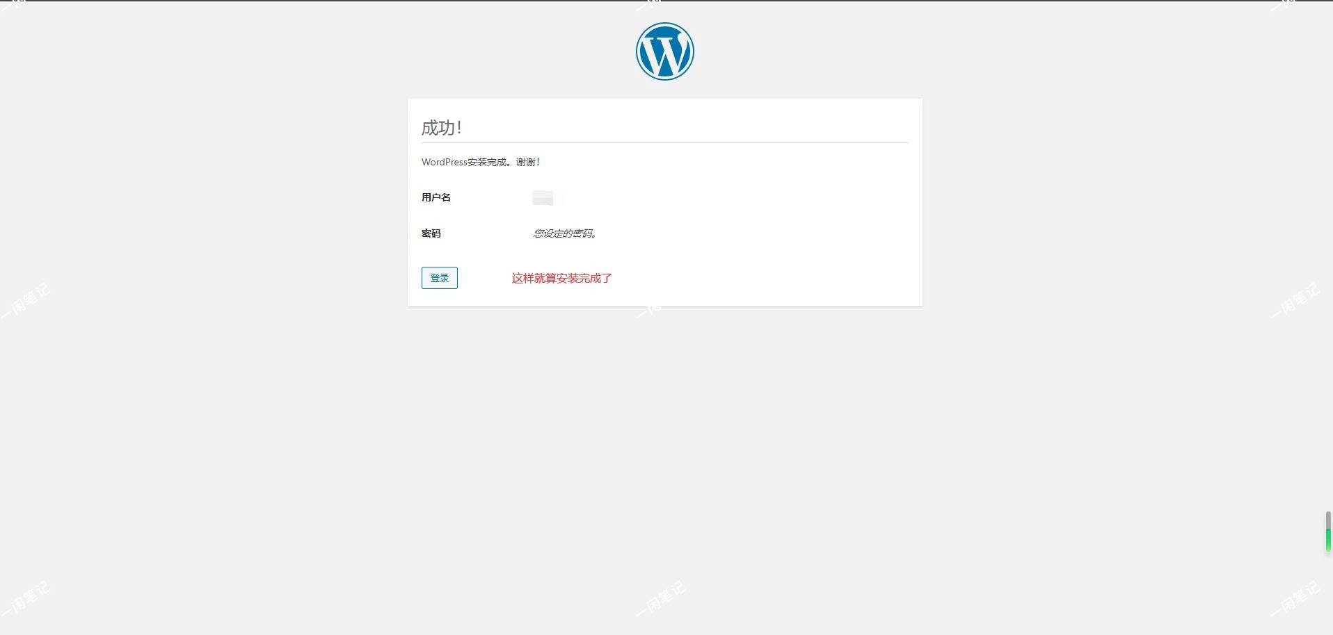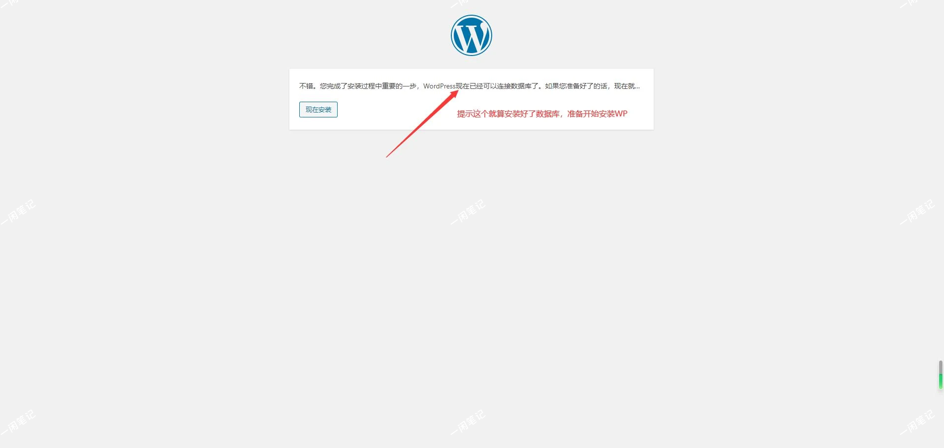 ⑤提示下图就算安装好了数据库,可以准备开始安装WP了。