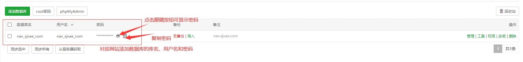 如果之前没注意数据库名和密码,可以在下图(数据库)这找到: